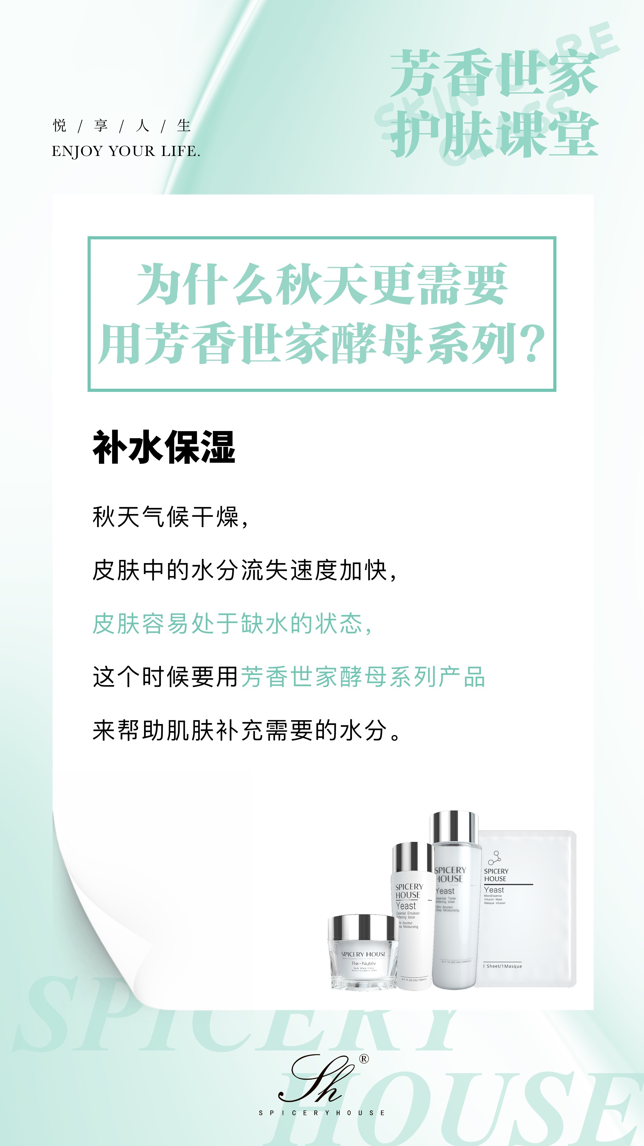 当秋风渐起,气温下降、空气湿度骤减,肌肤的 “换季危机” 也随之而来:干燥起皮、泛红敏感、底妆卡粉、细纹凸显…… 这些问题的根源,在于秋季肌肤水分流失速度加快 3 倍以上,同时屏障功能因温差、紫外线残留等因素变得脆弱。此时,普通保湿产品已难以满足肌肤 “深层补水 + 强韧屏障” 的双重需求,而芳香世家 spiceryhouse 酵母系列,凭借 “酵母精粹 + 多维保湿成分” 的黄金配方,成为秋日护肤的 “刚需之选”,从根源解决秋季肌肤干燥难题。