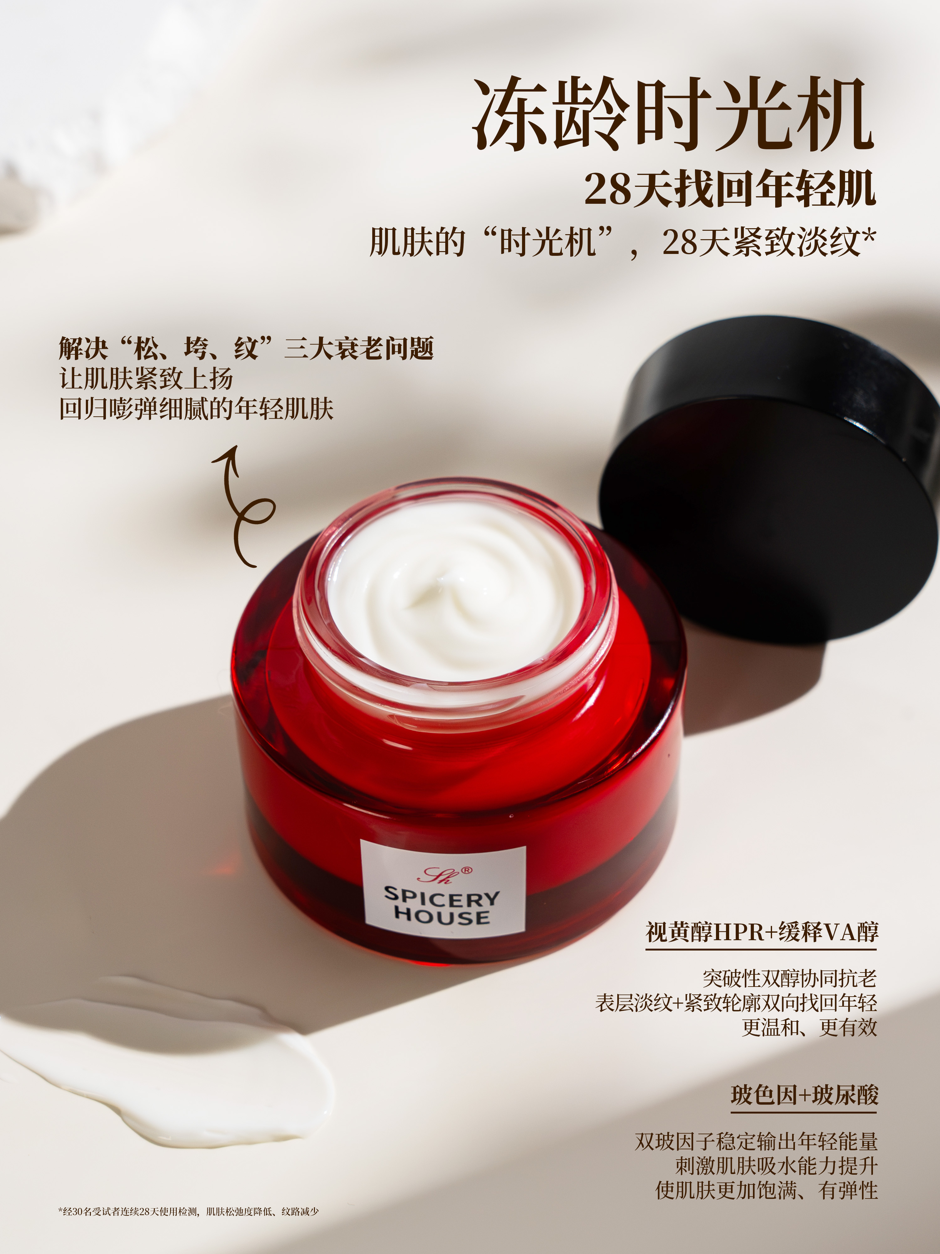 熬夜后的松弛垮脸、笑起来深不见底的法令纹、眼角悄悄爬来的细纹、肤色暗沉失去光泽……时光在脸上留下的痕迹,远比我们想象中更“贪心”。我们渴望的冻龄,从来不是僵硬的“无龄感”,而是让肌肤保持在充满活力的年轻状态。芳香世家spiceryhouse抗老系列,就像一台随身携带的“冻龄时光机”,以科学配方激活肌底活力,抚平岁月纹路,让肌肤在时光流转中依旧紧致透亮,定格青春光彩。