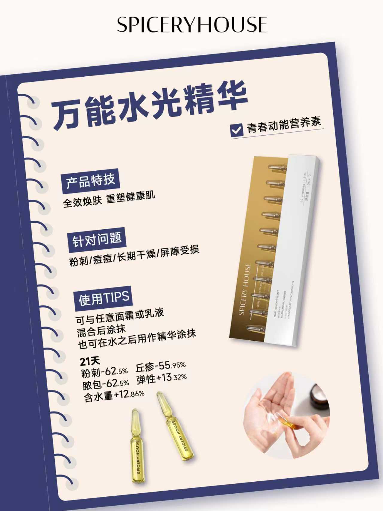 在颜值焦虑与理性护肤碰撞的当下,每个人都在寻找一款“一瓶搞定”的护肤神器——既能精准解决肌肤痛点,又能适配多肤质、多场景,无需繁琐叠加,就能养出通透水光肌。芳香世家Spicery House深耕科学养肤十余年,坚守“简”与“和”的核心理念,打破单一功效护肤的局限,重磅推出青春动能营养素,这款被万千消费者誉为“万能水光精华”的宝藏单品,以前沿科技融合多元活性成分,集补水、修护、提亮、抗初老于一体,适配所有肤质,轻松应对多种肌肤困扰,重新定义高效精简护肤新方式。