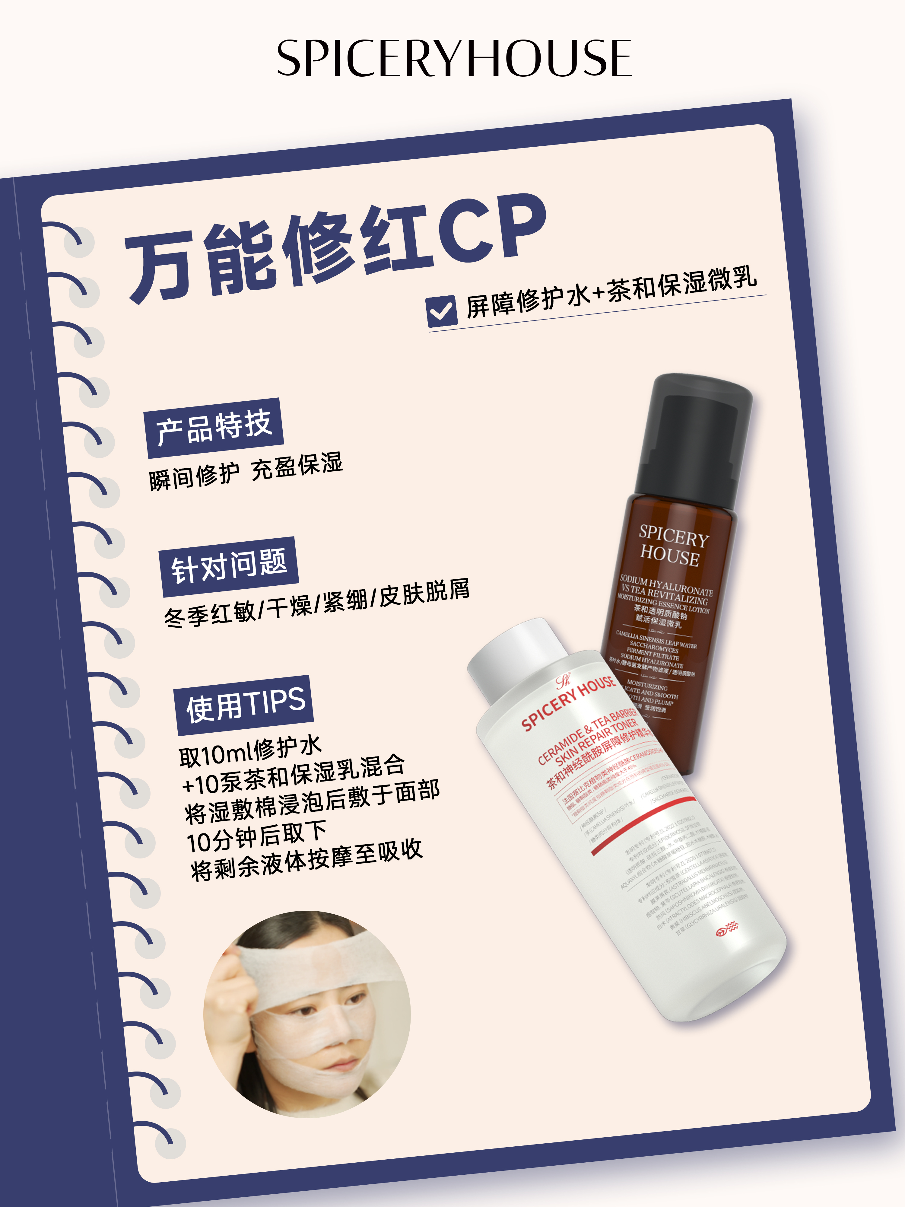 敏感泛红、屏障脆弱早已成为当代人的高频肌肤困扰——换季温差刺激会泛红、护肤品选错会泛红、熬夜压力大也会泛红,甚至暖气房、空调房待久了,脸颊也会浮现恼人的“红二团”。很多人盲目跟风用猛药舒缓,反而加重肌肤负担,让泛红反复难消。芳香世家Spicery House深耕科学养肤十余年,坚守“简”与“和”的核心理念,精准洞察敏感肌修红痛点,重磅推出“万能修红CP”——屏障修护水+茶和保湿微乳,以“先舒缓、再修护、后锁养”的黄金搭配逻辑,双管齐下直击泛红根源,强韧肌肤屏障,适配所有肤质,尤其是敏感肌、脆弱肌,轻松解决多种泛红困扰,重新定义温和高效的修红护肤新方式。