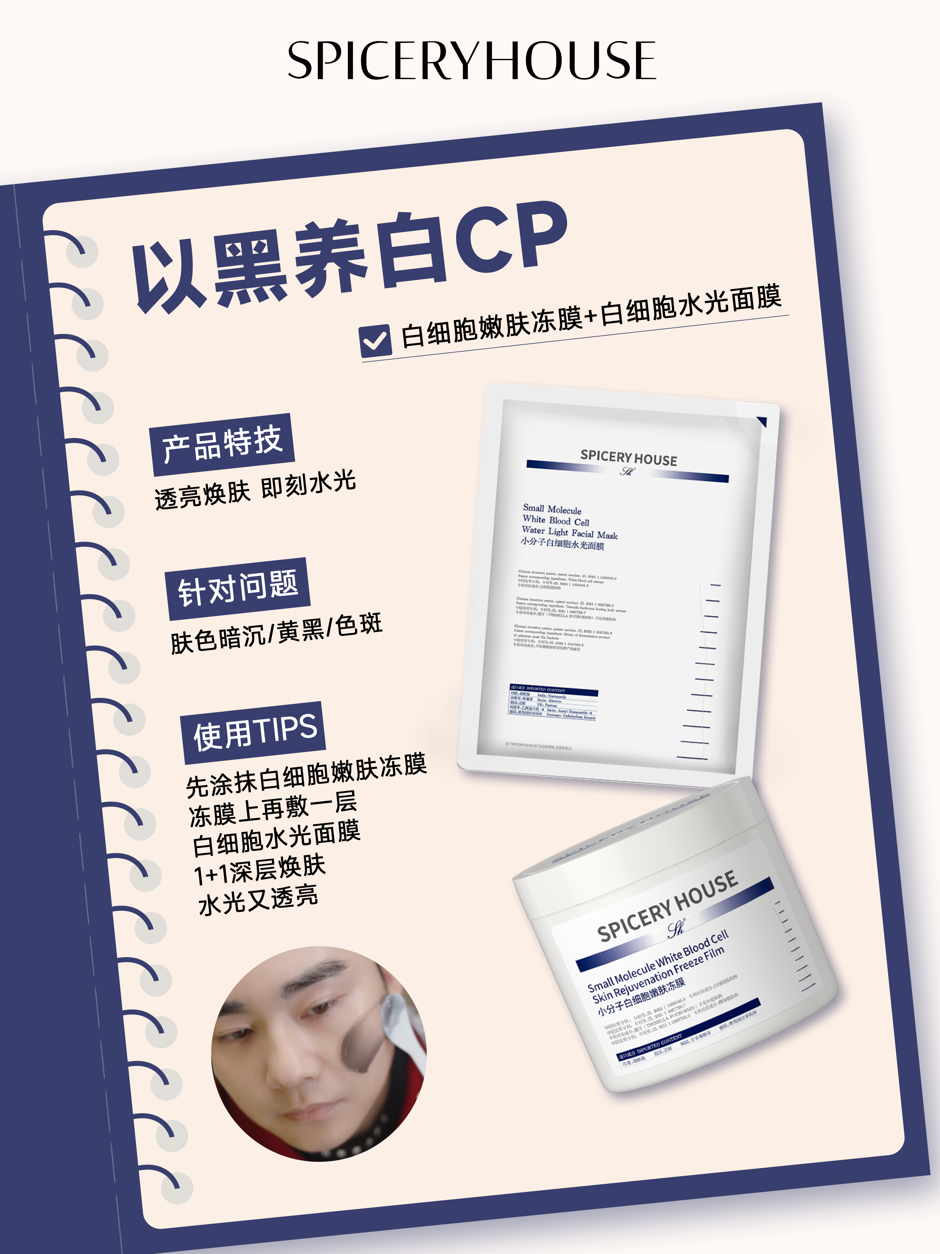 当代人对美白的追求,早已跳出“单一美白”的误区,转而渴望“温和焕亮、养肤不损屏”的深层养护——紫外线照射、熬夜暗沉、毛孔污垢堆积、黑色素沉着,再加上不当美白导致的肌肤屏障受损,让很多人陷入“越美白越暗沉、越提亮越敏感”的困境。芳香世家Spicery House深耕科学养肤十余年,坚守“简”与“和”的核心理念,精准洞察当代人美白痛点,重磅推出以黑养白黄金CP——白细胞嫩肤冻膜+白细胞水光面膜,以“先清后养、以黑焕亮”的双重逻辑,协同发力、相辅相成,从根源改善肤色暗沉、不均问题,兼顾肌肤透亮感与屏障健康,重新定义科学、温和、高效的以黑养白新方式。