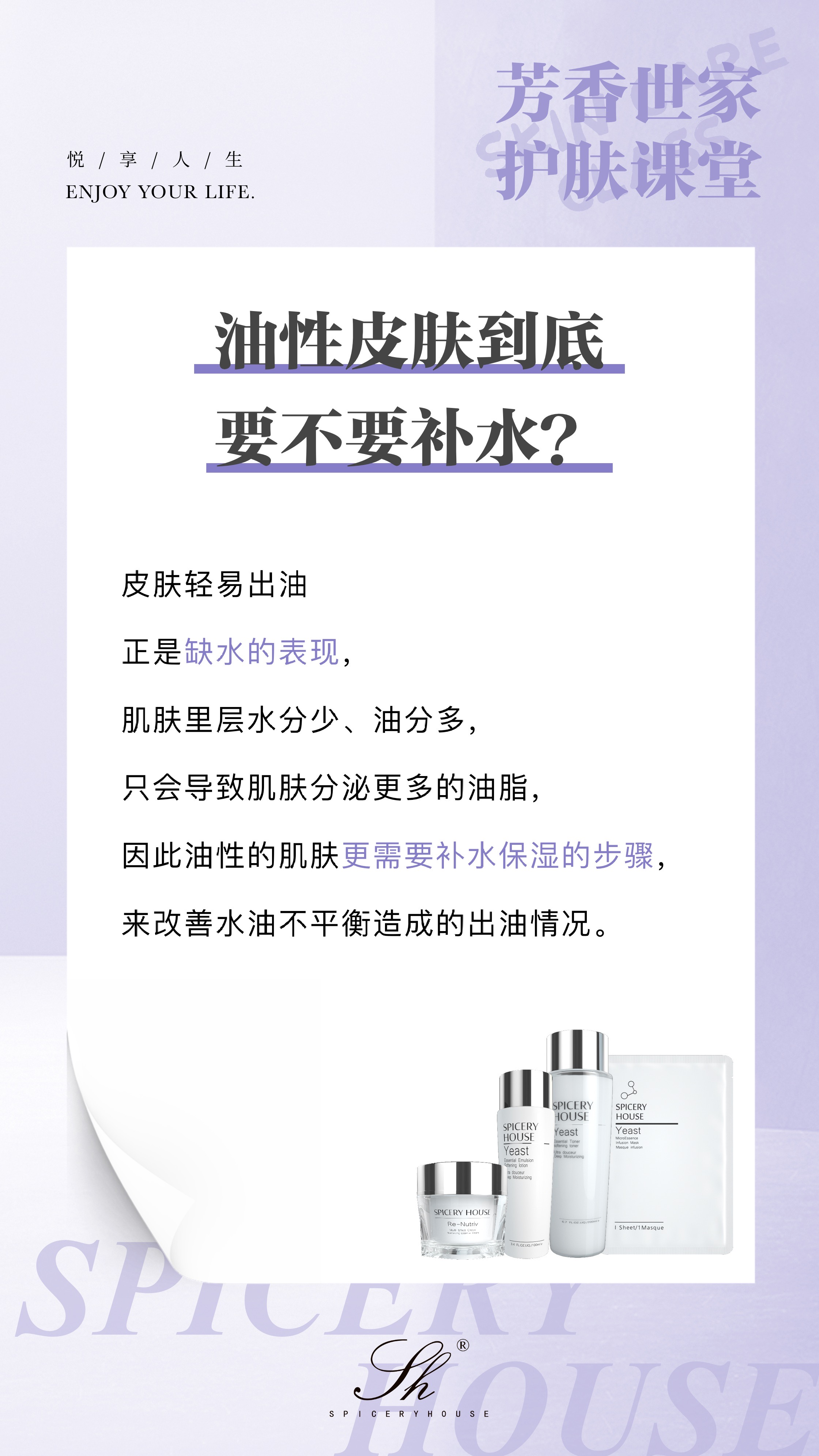 “我皮肤出油这么多,肯定不缺水,补水面膜、保湿霜根本不用涂!” 这是很多油性皮肤人群的护肤误区。但实际上,出油旺盛往往是肌肤 “缺水” 的信号—— 当肌肤底层水分不足时,皮脂腺会分泌更多油脂来 “代偿”,试图锁住仅存的水分,结果导致 “外油内干”:T 区泛油光、毛孔粗大,同时两颊又伴随紧绷、脱妆,甚至因油脂分泌失衡引发痘痘、闭口。想要改善油性皮肤的 “油光危机”,关键不是一味控油,而是选对兼具 “补水 + 控油 + 修护” 的产品,从根源调节水油平衡。芳香世家(SpiceryHouse)针对油性皮肤 “外油内干” 的核心痛点,打造了一套清爽无负担的补水方案,让油性皮肤既能喝饱水,又能告别油腻,保持清爽水润。