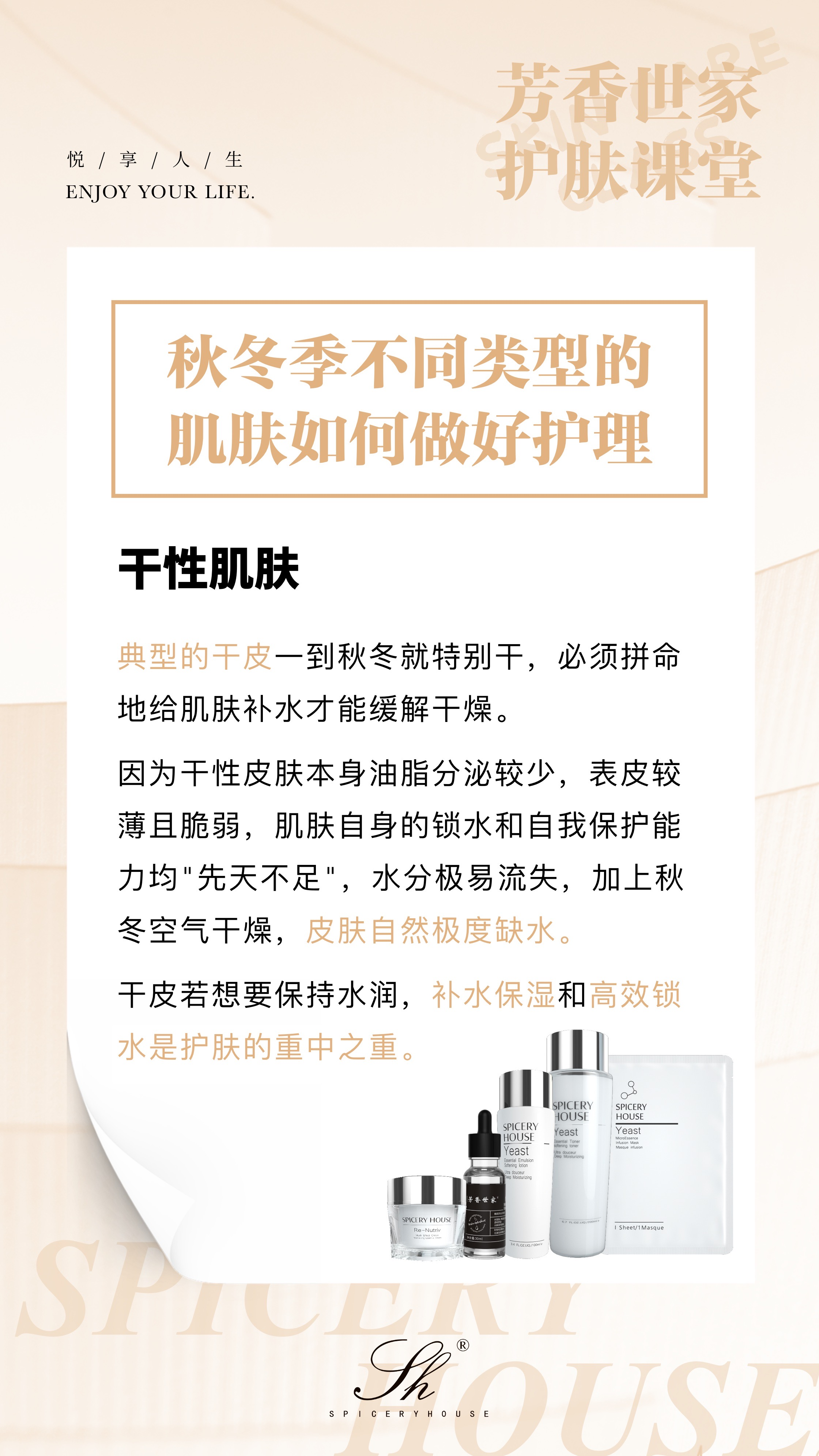 芳香世家 spiceryhouse 深耕干性肌肤护理领域,精准洞察秋冬干性肌肤 “缺水 + 缺油” 的双重需求,以 “深层补水、长效锁油、修护屏障” 为核心研发理念,打造出适配秋冬干性肌肤的全流程护理方案,从清洁到养护层层递进,帮助干性肌肤摆脱干燥困扰,重现水润饱满状态。下面,就为大家详细拆解秋冬干性肌肤的护理要点,以及芳香世家对应的明星产品。