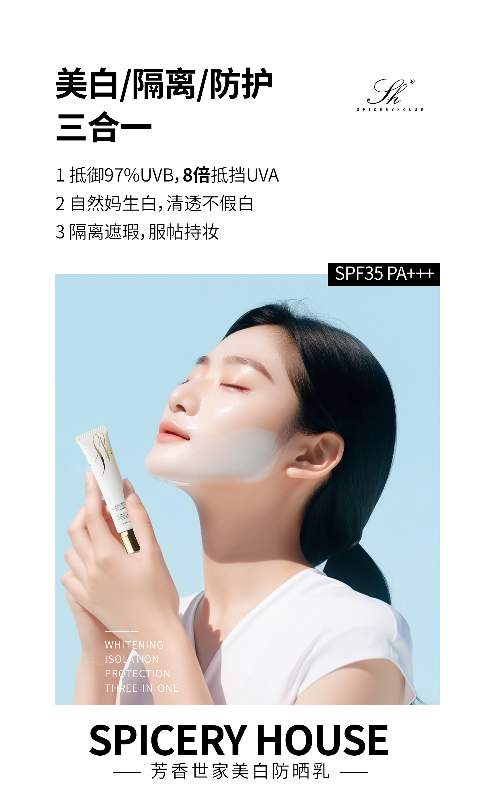 早上护肤总在“层层叠加”中浪费时间:涂完防晒等成膜,再抹隔离调肤色,想美白还得加一层素颜霜,厚重感让底妆频频卡粉;出门在外补涂更是麻烦,多种产品掏出来又占空间又费时间。其实,高效护肤从不需要“堆步骤”。芳香世家spiceryhouse美白防晒乳,集美白、隔离、防护三重功效于一体,一瓶搞定日间护肤核心需求,轻薄服帖不闷肤,让你在节省时间的同时,轻松拥有透亮好肤色。