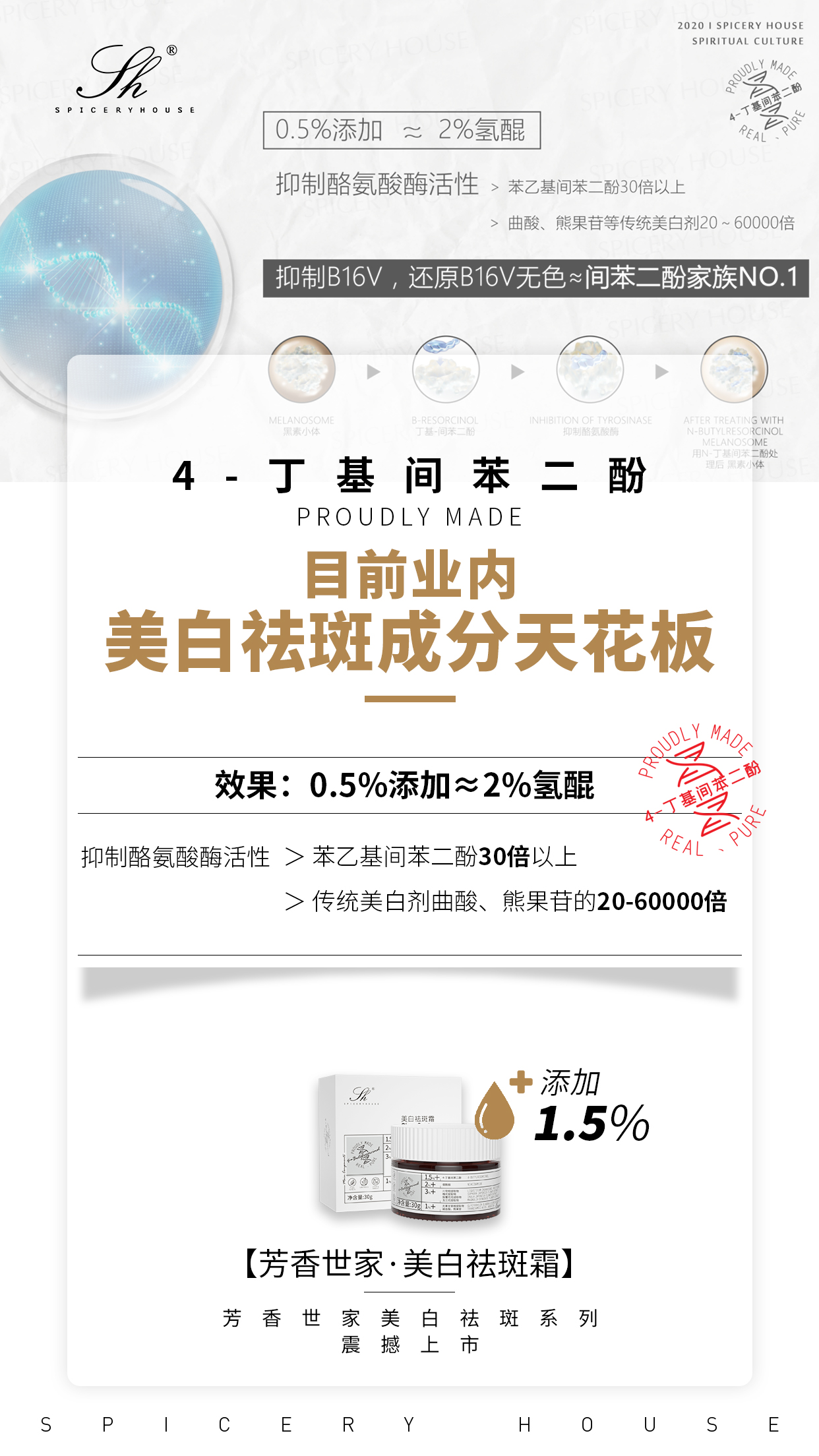2025年《美白功效评价体系》明确指出,优质美白祛斑产品需同时满足“安全温和、临床实证、全链路抑黑、根源修护”四大核心标准。在色斑、暗沉成为全民护肤痛点的当下,多数宣称高效的产品仍停留在单一成分宣传阶段,真正能达成多维度功效的屈指可数。芳香世家spiceryhouse美白祛斑霜,以“成分硬实力+科学复配”突破行业瓶颈,堪称当前美白祛斑成分领域的标杆之作。三重王牌成分复配,定义抑黑新高度
