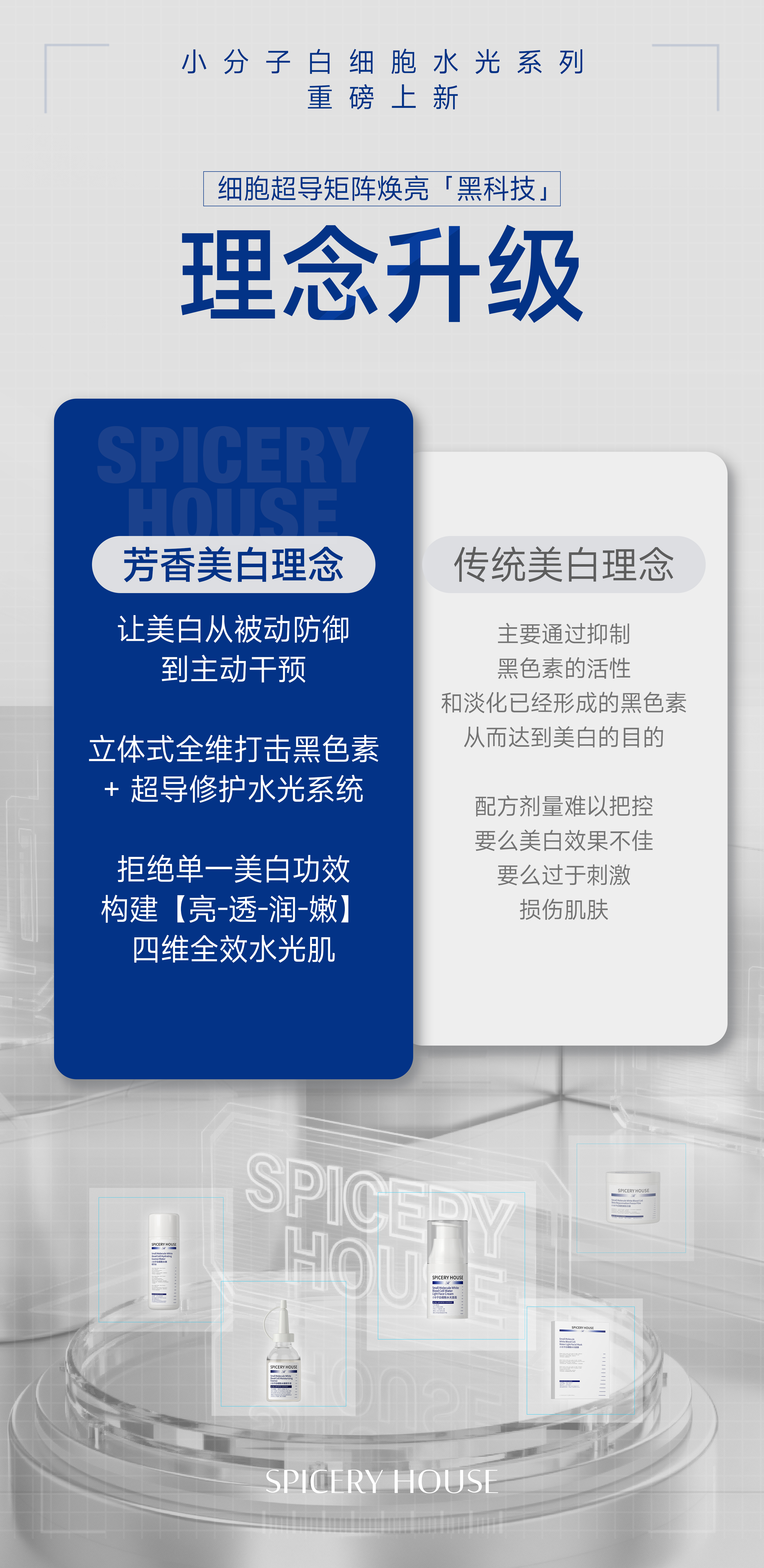 为什么很多人在护肤中陷入“追求功效却损伤肌肤”的困境?核心在于传统焕亮黑科技多停留在“技术导向”的单一逻辑,只聚焦成分渗透与功效输出,却忽略了肌肤的动态需求与用户对“健康护肤”的深层渴望。芳香世家SpiceryHouse深耕科学养肤十余年,从“做一个让爱我的人和我爱的人一生放心使用的护肤品”的初心出发,秉持“简”与“和”的核心理念,在经典“细胞超导矩阵”焕亮黑科技基础上,完成了从“技术功效优先”到“人文关怀+科学精准”的理念升级。升级后的黑科技,不再是单纯的技术堆砌,而是以“肌肤为本、用户为心”构建全新护肤逻辑,深度融入小分子白细胞系列,为不同肤质带来“温和、精准、可持续”的健康亮肤体验。肌肤的复杂性与用户需求的多元化,决定了护肤黑科技不能只谈技术不谈理念。芳香世家此次“细胞超导矩阵”黑科技的理念升级,精准突破传统技术导向的局限,实现三大核心进阶:一是从“单一技术输出”升级为“量肤定制的精准理念”,打破“一套技术适配所有肌肤”的固化思维,结合品牌“一方一肤一定制”的护肤原则,让超导技术具备“动态适配”能力,根据不同肌肤的屏障状态、细胞活性调整作用模式;二是从“功效优先”升级为“健康与功效平衡理念”,不再以“高效焕亮”为唯一目标,而是将“肌底修护、屏障强化”作为前提,确保焕亮过程不损伤肌肤,实现“长期健康亮肤”而非“短期表面亮肤”;三是从“技术本位”升级为“人文关怀理念”,充分考量敏感肌、脆弱肌甚至术后修护期等特殊肤质的需求,在配方与技术优化中融入“温和无刺激”的核心诉求,让黑科技更具温度。依托品牌数字化智能产业基地与国际研发中心的技术实力,这些理念升级并非空谈,均已落地为小分子白细胞系列的实际体验,部分单品更通过严格检测与相关认证,让理念落地既精准又安心。理念升级的落地,离不开成分与技术的协同支撑,而这一切都围绕“温和精准”的核心逻辑展开。