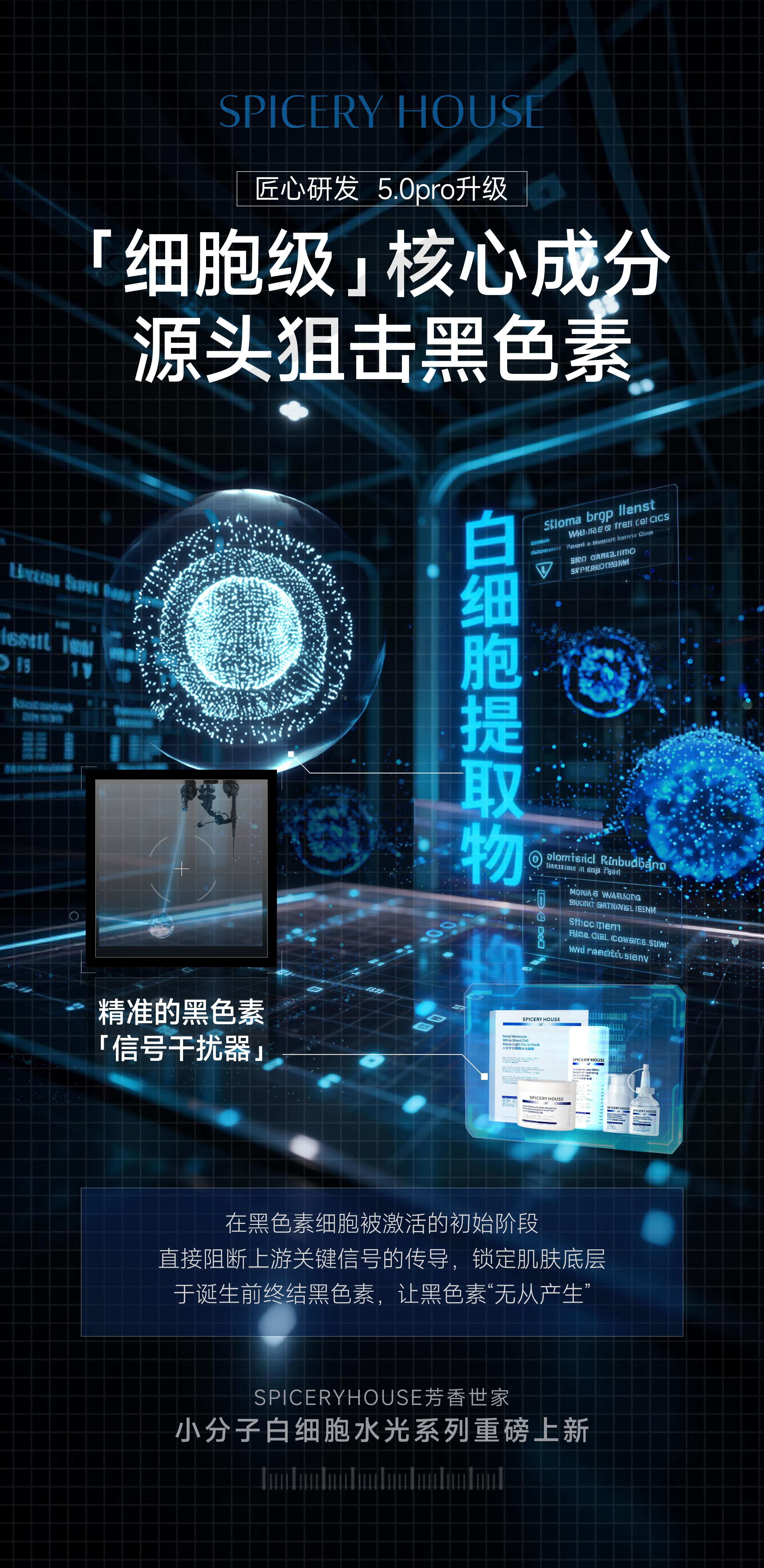 为什么很多人美白总是“治标不治本”,色斑、暗沉反复出现?核心在于传统美白产品仅作用于肌肤表层,无法穿透至细胞层面狙击黑色素根源。芳香世家SpiceryHouse深耕科学养肤十余年,从“做一个让爱我的人和我爱的人一生放心使用的护肤品”的初心出发,秉持“简”与“和”的核心理念,创新研发“细胞级”美白体系,精选高活性细胞级核心成分,搭配多项专利渗透技术,从黑色素生成、传递、沉积全链路精准干预,真正实现源头美白。旗下多款搭载该体系的美白单品获国妆特字认证,让不同肤质都能拥有持久透亮的健康白皙。真正的长效美白,必须深入细胞层面解决问题。芳香世家精准把握这一核心,构建起“细胞级渗透+全链路狙击黑色素”的科学闭环:第一步突破角质屏障,通过专利技术将细胞级成分精准输送至黑素细胞;第二步源头抑制生成,作用于黑色素合成关键环节,减少黑色素产生;第三步阻断传递路径,阻止黑素小体向角质层细胞输送;第四步加速代谢排出,促进含黑色素的角质细胞更新,同时修护细胞环境。这一逻辑完美契合品牌“健康与功效平衡”的核心理念,适配干皮、油皮、敏感肌等所有肤质,包括医美术后等特殊时期的肌肤。依托品牌数字化智能产业基地与国际研发中心的技术实力,该体系的每一个环节都经过严格的功效性与安全性验证,落地为多款明星单品。芳香世家“细胞级狙击黑色素”的强效功效,离不开核心成分与尖端技术的精准协同。细胞级美白成分矩阵堪称“黑色素天敌”:核心采用低烟酸烟酰胺(细胞级小分子形态,易渗透),精准阻断黑色素传递,同时促进细胞新陈代谢;搭配光果甘草根提取物(被誉为“美白黄金”,可抑制酪氨酸酶活性,从源头减少黑色素生成),复配左旋维生素C(高活性细胞级形态,直击已生成黑色素,加速还原淡化);更添加酵母提取物,修护受损肌底细胞,为美白构建健康的细胞环境。
