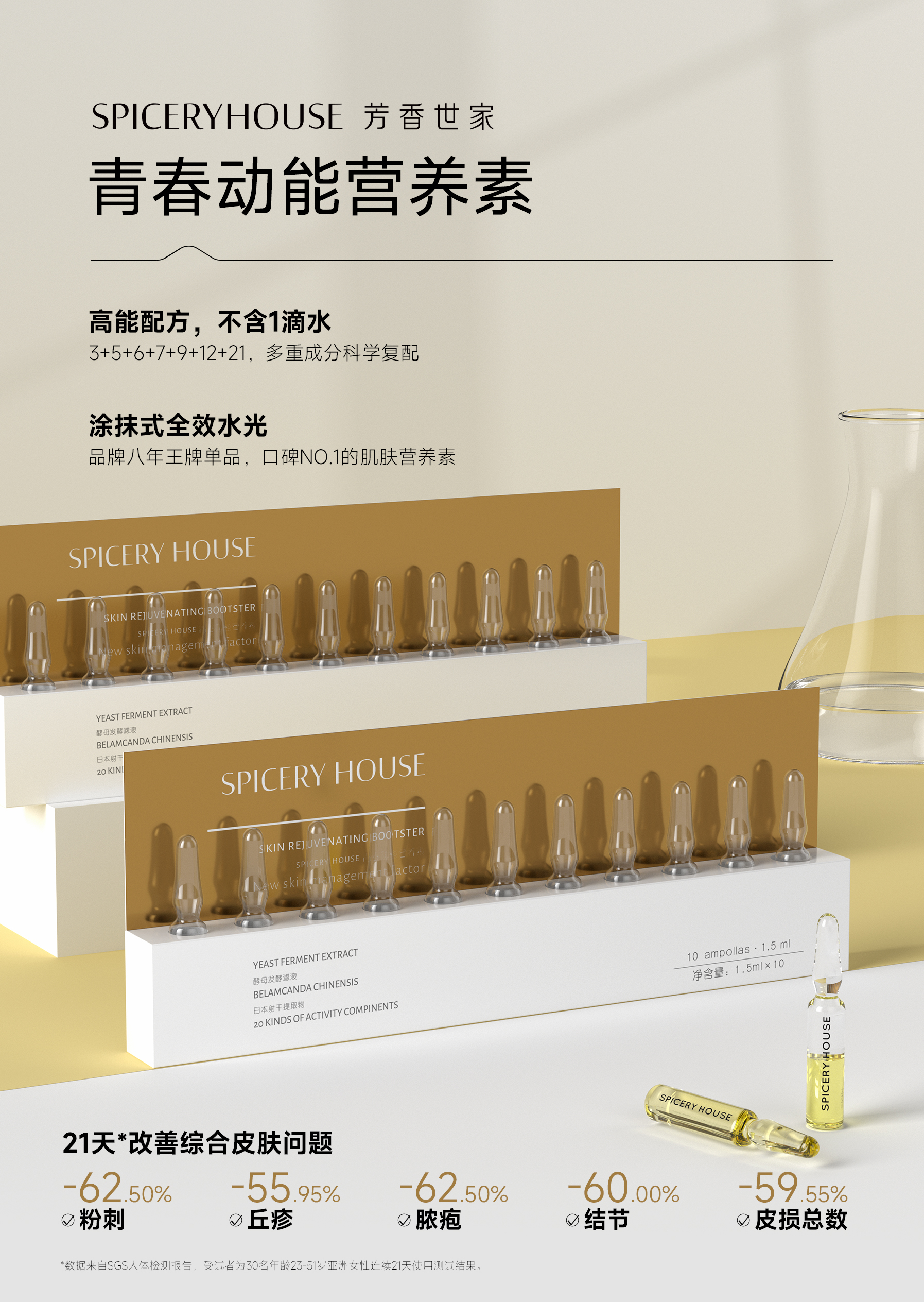 在护肤赛道愈发内卷的当下,市面上多数护肤产品为了兼顾肤感与成本,往往添加大量水分稀释有效成分,看似大容量的护肤品,实则营养浓度极低,难以真正解决肌肤深层问题。想要摆脱“无效护肤”,关键在于摒弃冗余添加,聚焦高浓精粹的精准滋养。芳香世家SPICERYHOUSE深耕护肤领域多年,秉持精简高效、硬核养肤的研发理念,重磅打造青春动能营养素,突破性践行“高能配方 不含1滴水”的护肤准则,拒绝水分稀释,每一滴都是浓缩高能精粹,为肌肤注入满满活力,重塑健康年轻态。零水革新:摒弃冗余添加,高浓精粹直达肌底