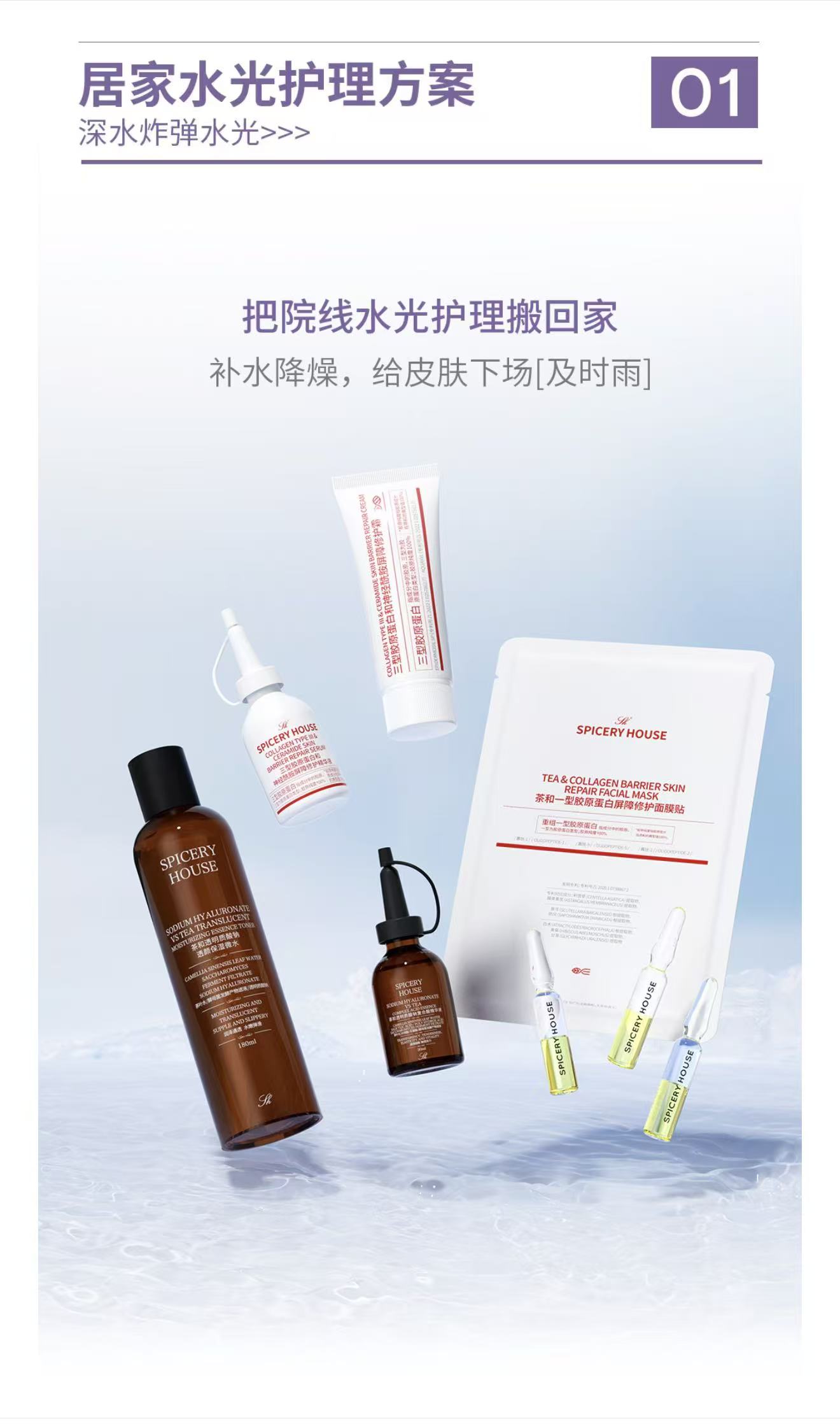 传统院线水光护理,虽效果出众但弊端明显:单次价格高昂,长期护理开销大;预约排队耗时长,适配快节奏生活难;部分项目破皮操作,术后泛红、结痂、反黑,恢复期还要严格防晒忌口,敏弱肌更是不敢轻易尝试。而普通居家护肤品,分子量大难吸收,营养只浮于肌肤表层,根本达不到院线级深润焕亮效果,护肤努力全白费。芳香世家SPICERYHOUSE深耕科研护肤领域,打破院线与居家护肤的壁垒,依托**专利小分子超导渗透技术**与细胞级养肤成分,复刻院线水光护理核心逻辑,打造小分子白细胞水嫩精华液+小分子白细胞水光面霜黄金CP。无需专业仪器辅助,无需破皮操作,日常涂抹就能实现院线级深层渗透、密集滋养、长效焕亮,温和无刺激、零恢复期,敏弱肌、熬夜肌、干糙肌都能安心用,省时省力又省钱,随时随地给肌肤做沉浸式水光SPA。