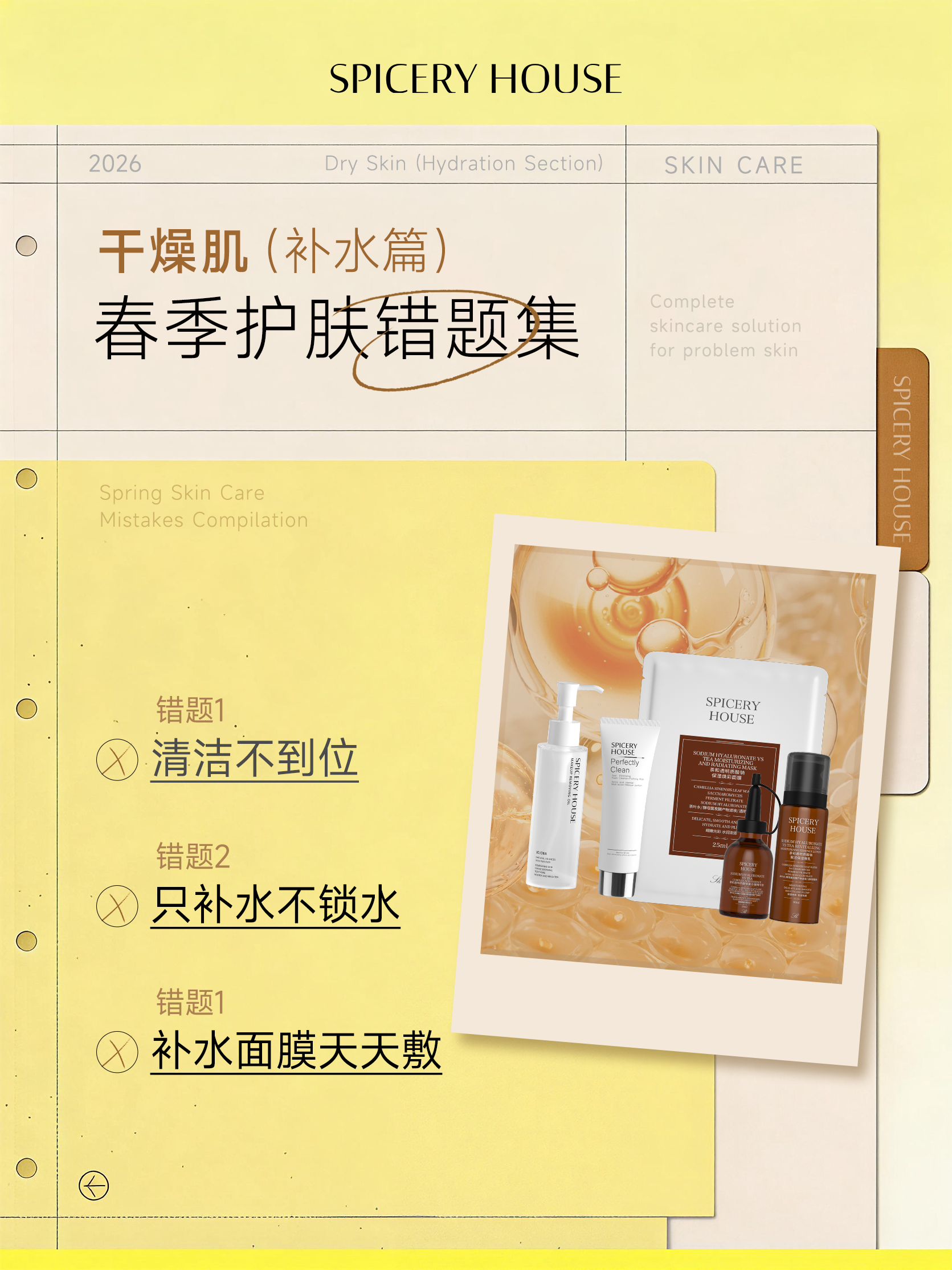春季护肤的尽头,不是盲目跟风、叠加产品,而是科学避坑、精准修护。很多人春季护肤越护越糟,根源就在于陷入了“补水面膜天天敷、过度清洁、忽视防晒、产品叠加过多”的高频错题,忽略了春季肌肤屏障脆弱的特点,盲目护肤只会加重肌肤负担,让肌肤陷入恶性循环[参考范文]。芳香世家Spiceryhouse,以科学护肤为核心,针对春季护肤高频错题,打造专属产品解决方案,从温和清洁到精准补水,从屏障修护到长效防晒,一站式覆盖春季护肤全流程,适配不同肤质,温和无刺激,让每一位使用者都能避开护肤雷区,纠正护肤错题。春季护肤,无需复杂步骤,无需盲目试错,遵循“温和清洁、精准补水、长效修护、严格防晒”的原则,搭配芳香世家专属产品,让肌肤摆脱泛红、干燥、闷痘、暗沉等困扰,恢复水润、稳定、细腻、透亮的健康状态,轻松解锁春季好肌,不负春日好时光。