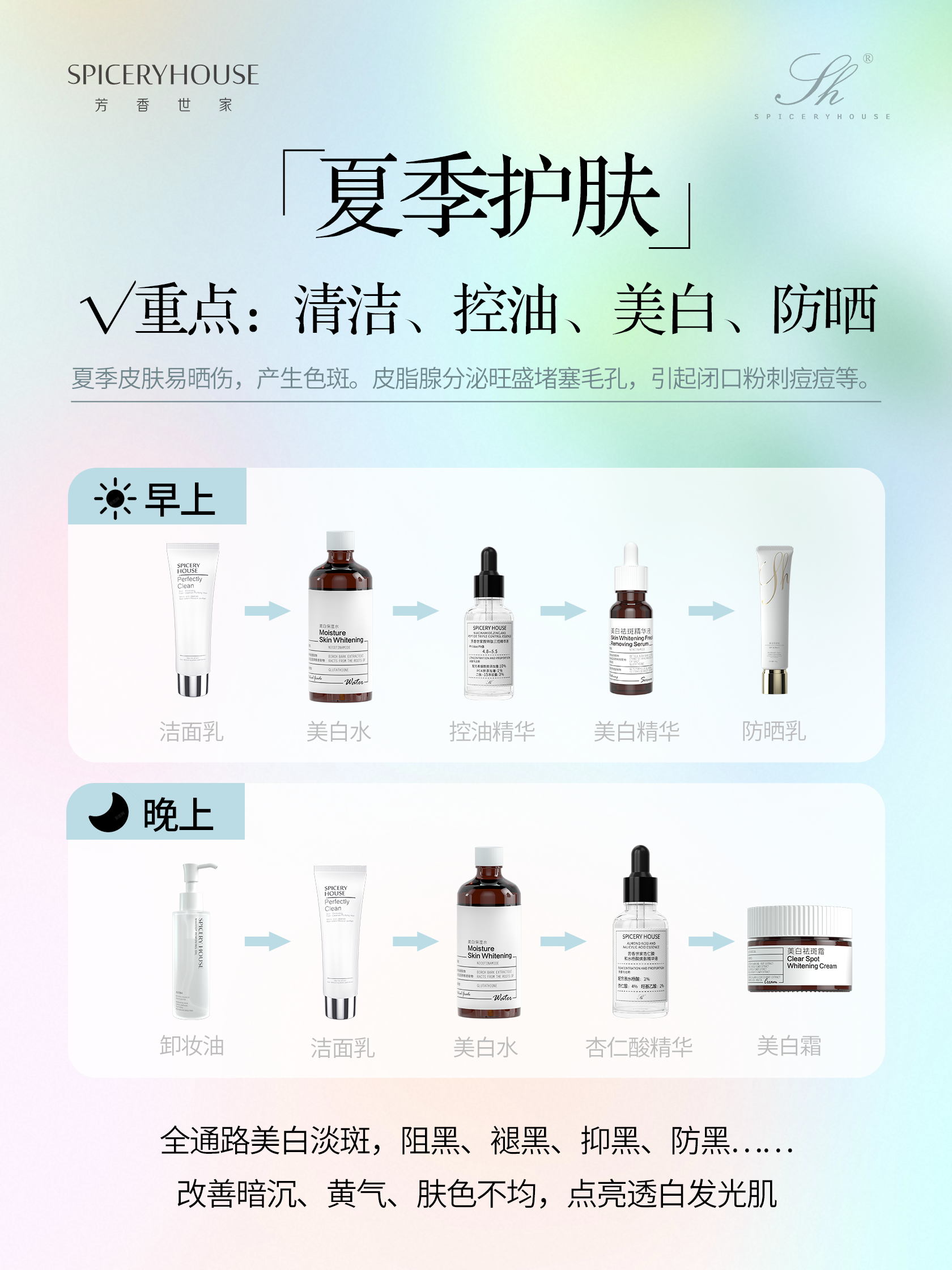 秋意渐浓,气温骤降、空气干燥,肌肤也随之进入“脆弱敏感期”——水分加速流失导致紧绷起皮、屏障受损引发泛红刺痛,夏季残留的紫外线损伤逐渐显现,加上昼夜温差大,肌肤水油失衡、维稳能力下降,稍不注意就会陷入“越干越敏、越敏越差”的恶性循环。其实秋季护肤无需繁琐叠加,抓住“补水、保湿、滋润、维稳”四大核心,就能轻松摆脱秋日肌肤困扰,保持水润细腻好状态。芳香世家spiceryhouse秉持“科学护肤、温和有效”的品牌理念,精准捕捉秋季肌肤痛点,打造专属秋季护肤方案,用高适配度产品覆盖四大护肤重点,层层守护,帮你解锁秋日水润维稳肌。
